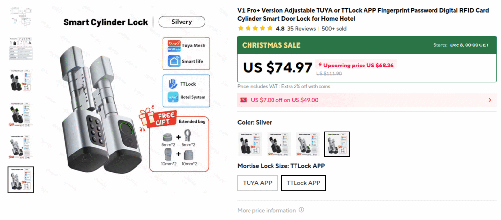 Sciener smart lock V1 Pro+ for 50,95$ in the TTLock version without Gateway